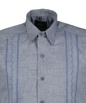 Camisa manga corta y larga para caballero de 50% Alg. y 50% Pol. con picuetas en la parte de frente acompañado de bordado, modelo clasico.