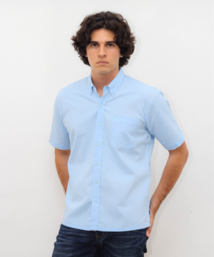 camisa manga corta para caballero de 100% Algodón. con la clásica bolsa frontal.