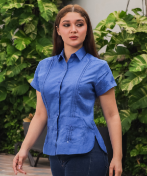 Guayabera manga corta para dama de 100% Lino. con alforzas en la parte de frente y cuatro bolsas.