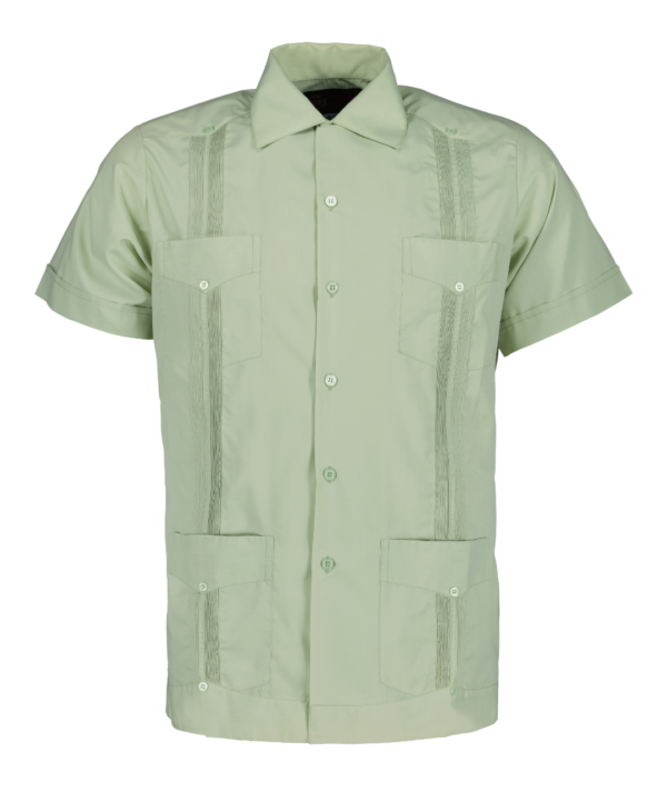 Guayabera manga corta y larga para caballero de 65% POL. y 35% Alg. con alforzas en la parte de frente y las tradicionales cuatro bolsas, modelo clasico.