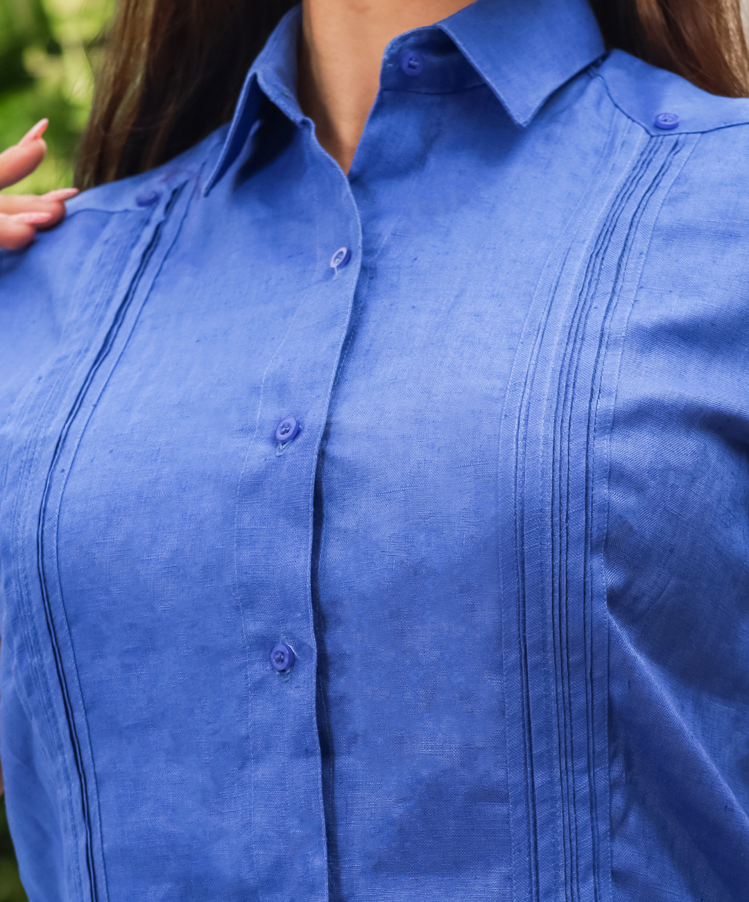 Guayabera manga corta para dama de 100%  Lino. con alforzas en la parte de frente y cuatro bolsas.